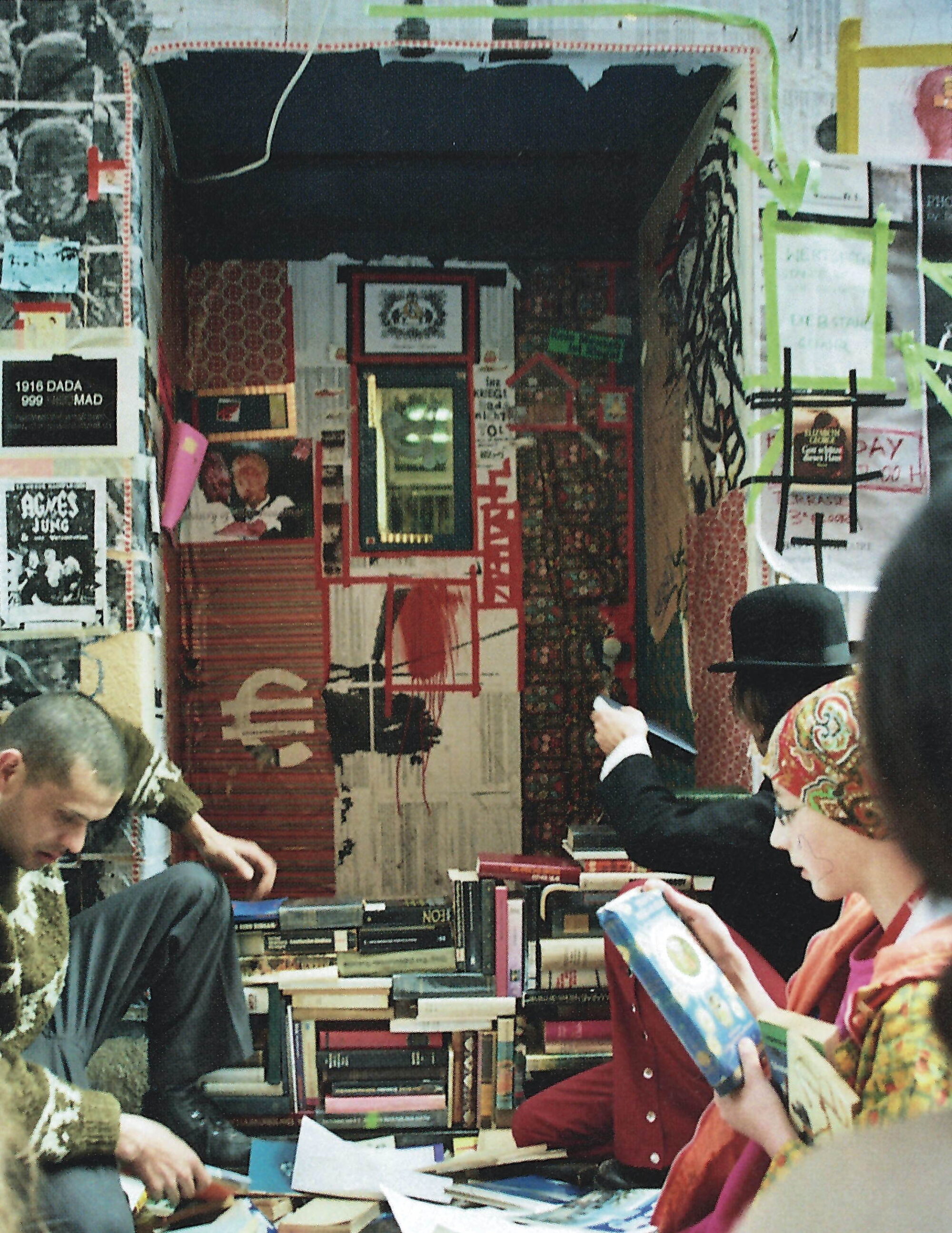 Die Besetzung wurde auf unterschiedliche Weise erzählt und überliefert – in einem Spannungsfeld zwischen Mythenbildung und Realität, Gerüchten und Fakten über eine anarchistische, gemeinschaftliche und sich gegen jede Form der konventionellen Institutionalisierung richtende Aktion, die, nicht ohne Paradox, der Ursprung für die Bildung einer anerkannten kulturellen Institution ist. Wenn wir versuchen, die Schritte genau nachzuvollziehen, stossen wir schnell auf verschiedene, sich widersprechende Versionen: 2002 gab es anscheinend die Idee den Ort als eine Apotheke oder als Auktionshaus zu nutzen. Eine andere Erzählung besagt, dass die Versicherungsgesellschaft Swiss Life, welcher das Haus bis 2007 gehörte, vor allem Wohnungen bauen wollte. Mark Divo, ein Künstler, der in Zürich in den 1990er und 2000er Jahren aktiv war, und auch heute eine künstlerische Praxis verfolgt, behauptet, er habe in der Punkszene von der Zweckentfremdung des Geburtsortes von Dada gehört, das damals wegen Renovierungsarbeiten leer stand. Die Praxis des Künstlers, welche Divo in der Dada-Tradition sieht, bestand und besteht darin, verlassene Räume zu besetzen, um auf nichtkommerzielle Weise Ideen der Solidarität und Inklusion zu verbreiten (2). Er gehörte unter anderem zu der Gruppe, die Anfang der 1990er Jahre das Kunsthaus Tacheles in Berlin-Mitte gründete, ebenfalls auf der Grundlage einer Hausbesetzungsaktion an einem historischen Ort, der zum Abriss verurteilt war. Im Zusammenhang mit dem Cabaret Voltaire in Zürich im Jahr 2002 verteidigt Divo, dass er eine Aktion zur Besetzung des Ortes initiiert hat, die sich in einer Gemeinschaft organisierte und auch aus der Festlegung eines mit der Besetzung verbundenen Kulturprogramms bestand. Mit Blick auf das angeblich mangelnde Wissen in der Szene über das kulturelle Erbe von Dada definierte Divo das Ziel der Besetzung folgendermassen: «Es schien mir vonnöten, der Zürcher Szene den Dadaismus näher zu bringen» (3). Anschliessend lud er den Künstler Pastor Leumund (geb. Jan Theiler) ein, sich ihm anzuschliessen, um die Besetzung im Kollektiv durchzuführen. Dieser war damals in der Berliner Underground-Kunstszene aktiv und hatte unter anderem im Tacheles Musik- und Performanceveranstaltungen organisiert. Am 2. Februar 2002 betrat die organisierte Gruppe von Aktivist*innen und Künstler*innen das Cabaret und blieb dort bis zum 4. April desselben Jahres. Der Wunsch, die Zürcher Szene näher an Dada heranzuführen, nahm in dadaistisch inspirierten Aktionen Gestalt an, die auf die historische und kulturelle Bedeutung des Gebäudes aufmerksam machen sollten. Zu den teilnehmenden Künstler*innen gehörten neben Mark Divo und Pastor Leumund unter anderem Ajana Calugar, Mickry 3 (Nina von Meiss, Dominique Vigne und Christina Pfander), Lennie Lee, Dan Jones und Ingo Giezendanner.