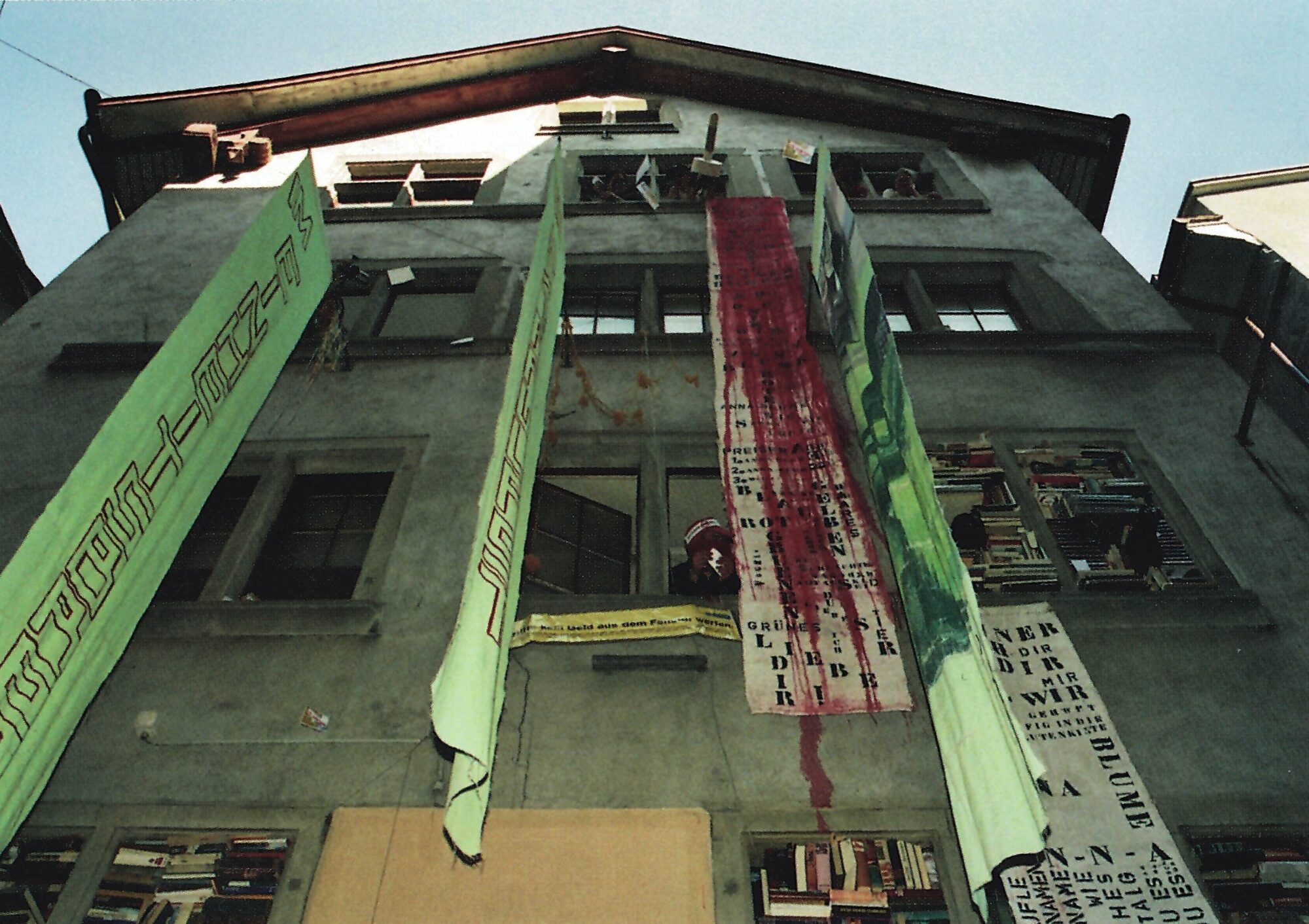 (4) Beschreibungen des Ablaufs der Besetzung und der Aktivitäten, die während der Monate der Hausbesetzung stattfanden, finden Sie dort: Divo, Mark, Im Bett mit Mark Divo, Biel: edition clandestin, 2013, S.198-204 und Leumund, Pastor: “Zeent am Firmament”, Rede im Cabaret Voltaire, Dada- Jubiläumsfest, 5. Februar 2016, erschienen in. Die Wochenzeitung, Nr.06/2016.