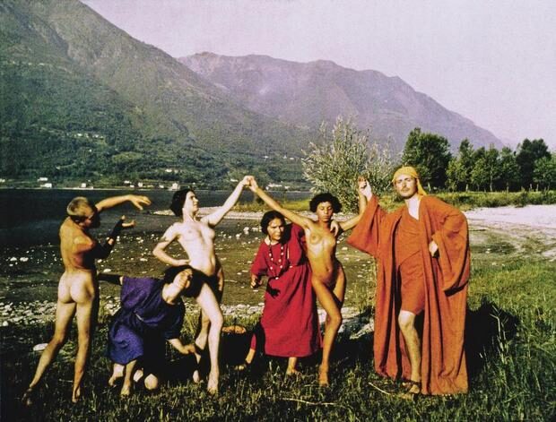 Eine Art Gesamtkunstwerk entstand auch mit dem Monte Verità, in der Nähe des Tessiner Städtchens Ascona. Dieses klimatische und landschaftliche Mikroparadies entwickelte sich von der Jahrhundertwende bis zum Beginn des Zweiten Weltkriegs zu einem Zufluchtsort für Lebensreformer*innen, Vertreter*innen des Pazifismus, Anarchismus und Kommunismus, Schriftsteller*innen (unter anderen Hermann Hesse), Künstler*innen und Kriegsflüchtlinge. 1900 von Henri Oedenkoven und Ida Hofmann erworben, war der «Berg der Wahrheit» eine Kooperative und Naturheilanstalt, wo Gäste alternative Lebensstile kennenlernten. Die Bewohner*innen lebten vegetarisch, genossenschaftlich, frei von Genussmitteln und zumindest oberflächlich gleichberechtigt. Bilder zeigen nackte Männer, die in Gärten Gemüse graben und Frauen, die in luftigen langen Kleidern tanzen. Es bildete sich eine Kolonie von Künstler*innen, die sich dort bei den oberitalienischen Seen inspirieren liess. Unter ihnen waren die Dadaist*innen Hugo Ball, Hans Arp, Sophie Taeuber-Arp, Hans Richter und Marcel Janco. Auch Hugo Ball und Emmy Hennings besuchten den Ort. Analog zur Gründung des Cabaret Voltaire 1916 in Zürich eröffnete 1913 Rudolf von Laban in den Sommermonaten seine Schule für Bewegungskunst auf dem Monte Verità, wo sich die Dadaist*innen und die Tänzer*innen der Laban-Schule begegneten und künstlerisch zusammenarbeiteten. Der Monte Verità entwickelte sich im frühen 20. Jahrhundert ausserdem zu einem der wichtigsten Entstehungsorte des modernen Ausdruckstanzes. Basierend auf Improvisation, Gymnastik und einer Mischung aus Tanz, Gesang und Gesprochenem verbindet Laban den Körper mit dem ihm umgebenden Raum. Er wollte den Tanz zu einer eigenständigen Kunstform erheben, ihn von anderen Künsten lösen und Leib, Seele und Geist vereinen. Damit stellte er den Tanz ins Zentrum seiner eigenen Vorstellung des Gesamtkunstwerks. Die Tänzer*innen, unter ihnen Suzanne Perrottet, Katja Wulff und Mary Wigman, tanzten an der frischen Luft, entweder nackt oder in leichten Gewändern bekleidet. Mary Wigman entwickelte dort auf dem Monte Verità unter Laban ihren eigenen Tanzstil und machte den Ausdruckstanz bald international bekannt. Geprägt von Drehbewegungen, die von dort komponierter Musik begleitet wurden, sollte dieser sowohl spirituelle als auch materielle Ausdrucksform zu einem absoluten Tanz werden. Wigmans Tanz hatte nichts mit Dramatik oder Theater zu tun – er ist abstrakt, und soll metaphysische Erfahrungen visualisieren. Der Monte Verità verlor ab dem Zweiten Weltkrieg an Bedeutung. Erst 1979 mit Harald Szeemanns Ausstellung «Mammelle delle verità» («Die Brüste der Wahrheit»), die vor Ort eröffnet wurde, dann auf Reisen ging und heute als Dauerausstellung an seinen Ursprungsort zurückgekehrt ist, wurde der Berg der Wahrheit wiederentdeckt.