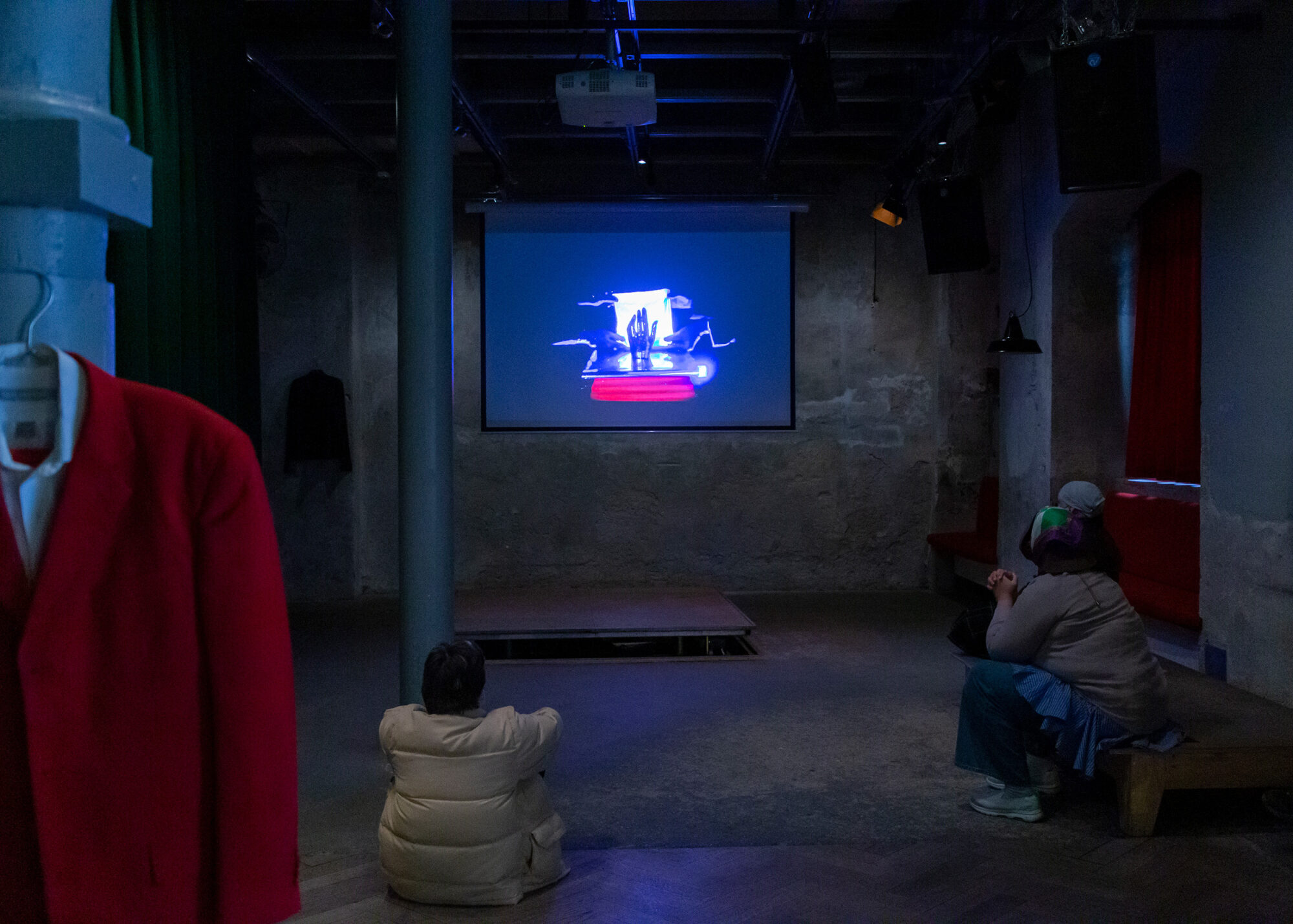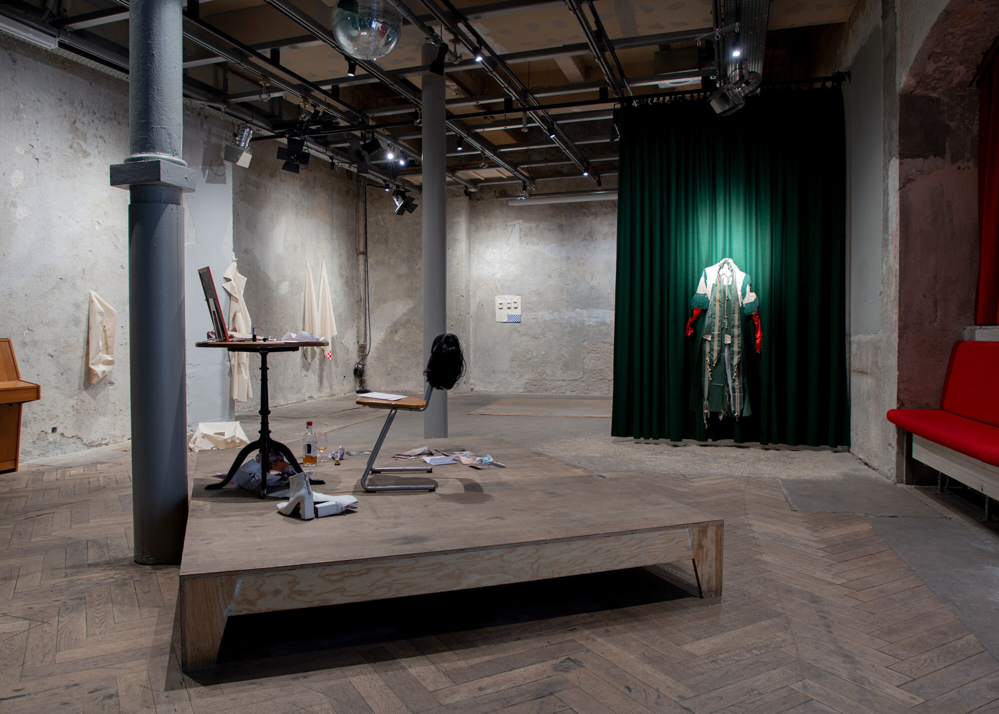 Am letzten Abend konnte Kasia Fudakowski endlich die Performance zum ›Joke Gap‹ aufführen. Zuvor zeigten wir die Texte und Kostüme dazu im Cabaret Voltaire. Der ›Joke Gap‹ kann auch über die feministische Implikation verstanden werden: Das, was als lustig wahrgenommen wird, verändert sich je nach historischem Kontext, Lebensalter oder Kulturkreis. Fudakowskis Performance wechselt zwischen Leichtigkeit und schmerzhaften Momenten, unterstützt von gemalten Kostümen, die Liesl Karlstadt und Karl Valentin zum Leben erweckten.
